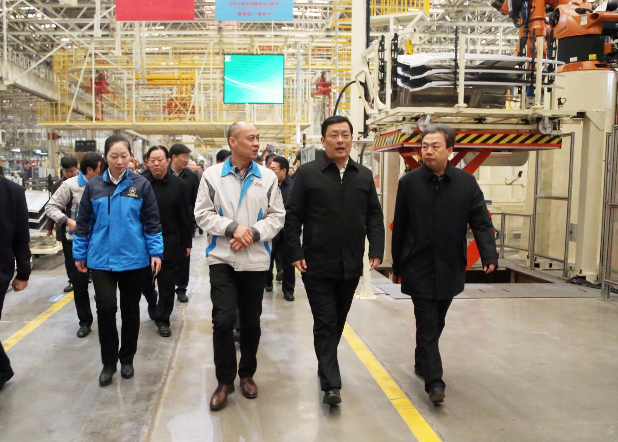 丁小強一行深入沖壓、焊接、涂裝、總裝四大生產車間,實地參觀并詳細了解了大運汽車企業運行、科技研發和市場前景等情況。在總裝車間整車下線處,丁小強先后試乘大運重卡V9高端牽引車、新能源純電動乘用車,感受企業全面貫徹新思想、新理念帶來的先進成果。