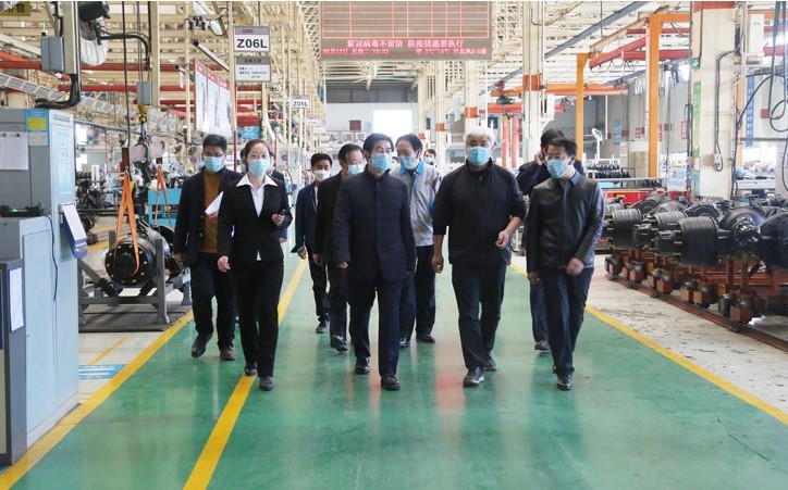 劉勇一行深入沖壓、焊接、涂裝、總裝四大工藝生產(chǎn)車(chē)間實(shí)地調(diào)研,詳細(xì)了解了我公司員工復(fù)工、防疫工作開(kāi)展、產(chǎn)能達(dá)效等情況,對(duì)我司防疫工作不松懈、多措并舉保生產(chǎn)的做法給予了高度肯定。