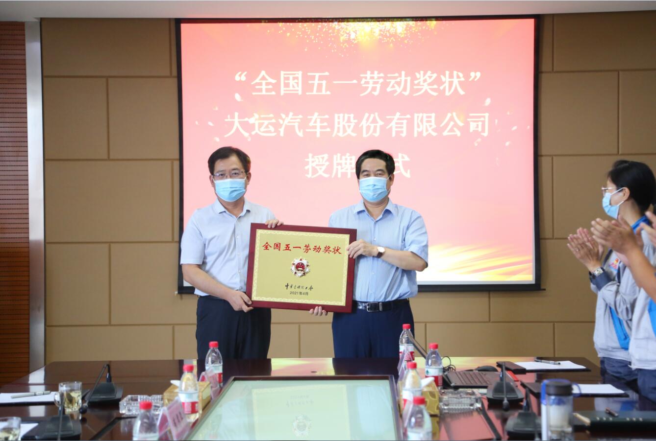 8月10日,市人大常委會副主任、市總工會主席杜自立,市總工會黨組書記、常務副主席梁武軍,市總工會黨組成員、副主席秦恩年帶領工作人員來到大運汽車舉行2021年“全國五一勞動獎狀”授牌儀式,集團董事長遠勤山、公司工會主席孫兆明、副主席馬魯堂與工會委員出席了授牌儀式。