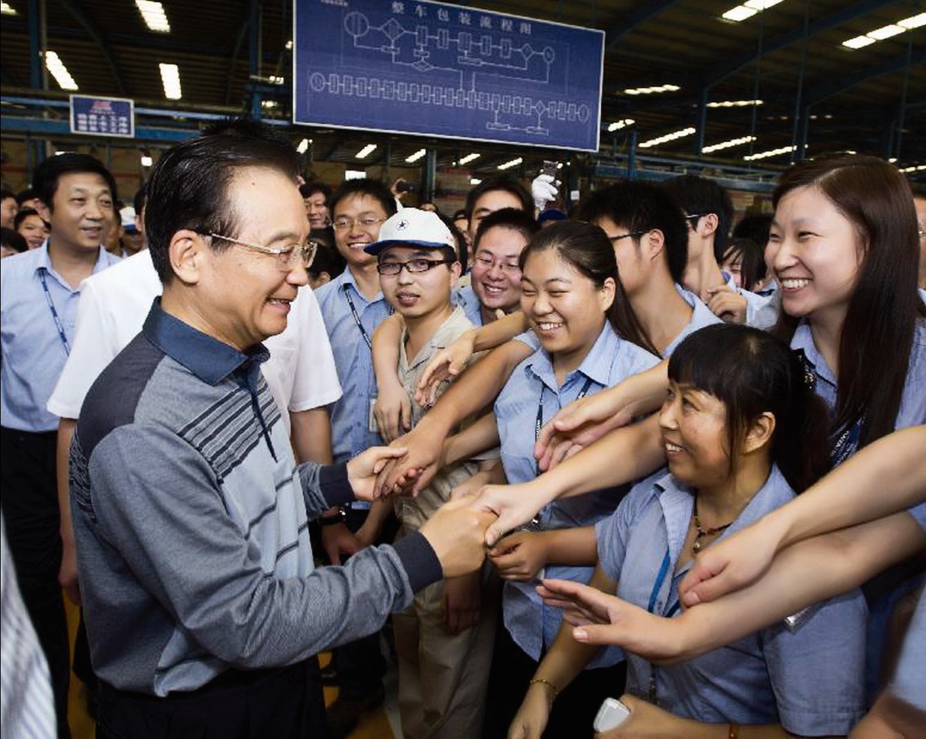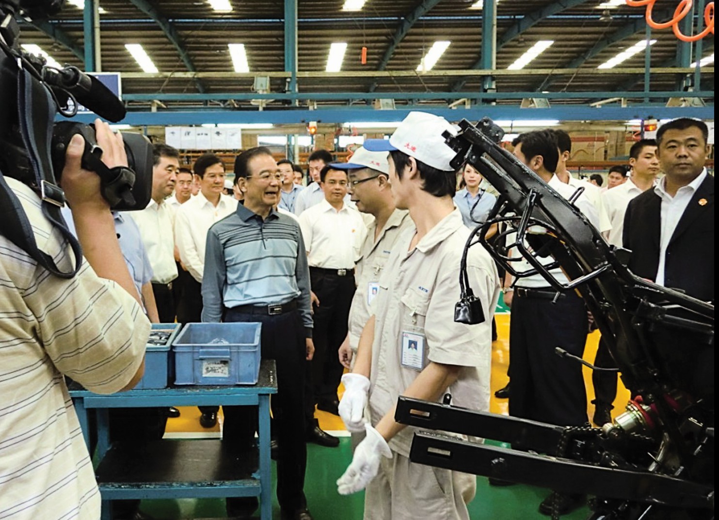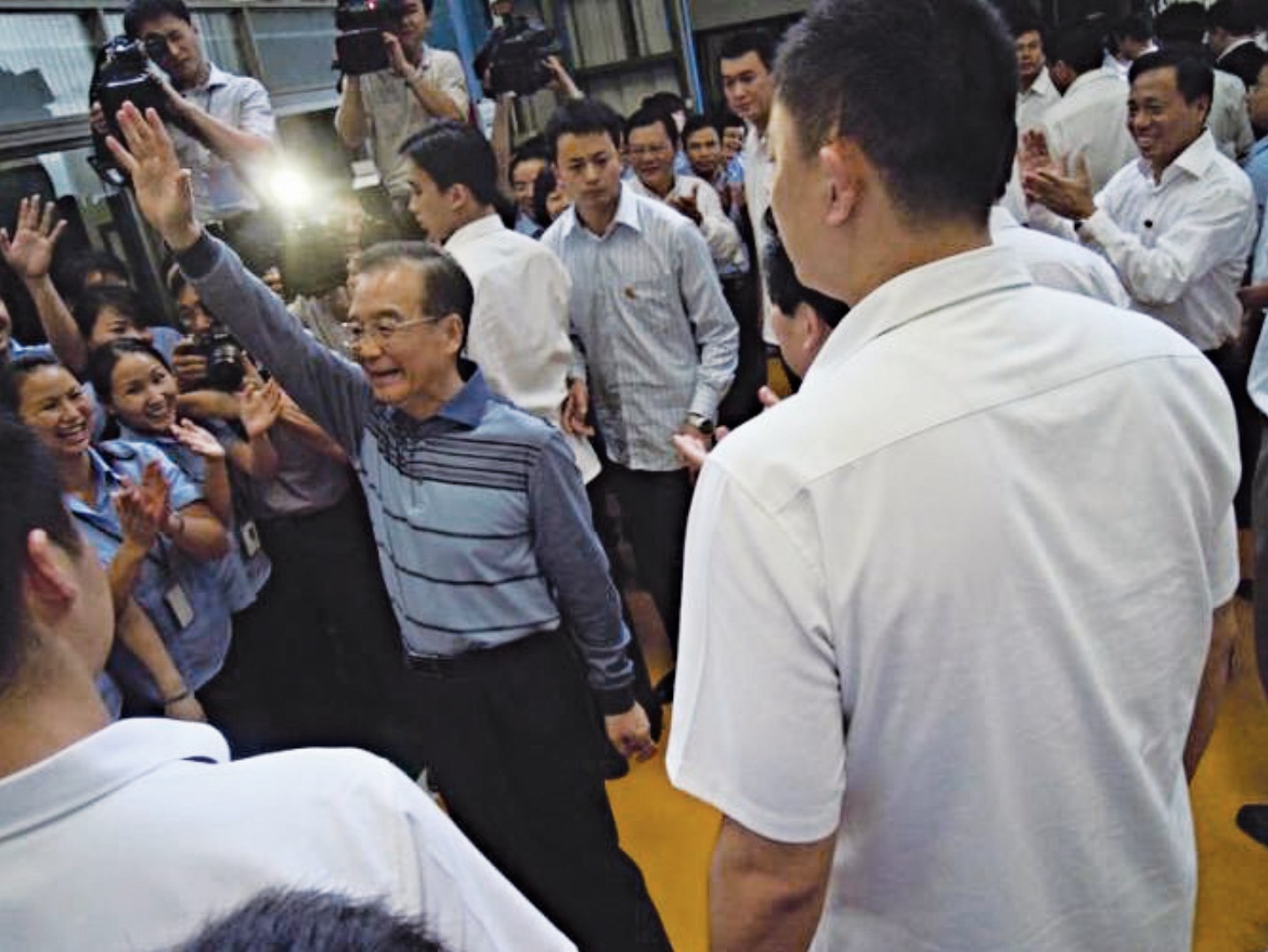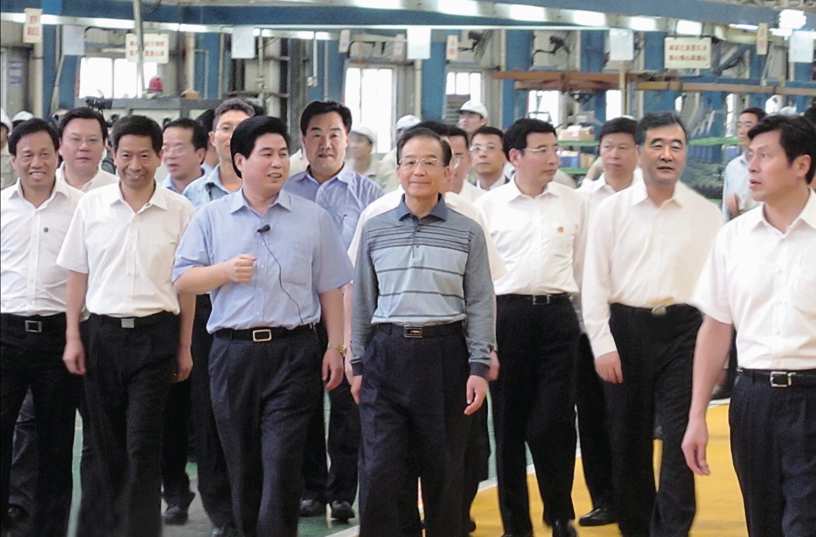 溫總理一行首先來到大運集團展廳,聽取了集團董事長遠勤山關于大運集團發展歷程和大運產品現狀的匯報。隨后溫總理一行走進車間,實地參觀了公司產品的生產流程。在車間現場,溫總理與一線員工親切交談,仔細詢問他們的工作、生活情況。